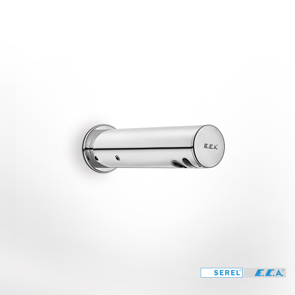 Ηλεκτρονική κάνουλα νιπτήρος τοίχου με φωτοκύτταρο (λειτουργεί με μπαταρία αλκαλική 6V), μονής ροής, Serel Eca