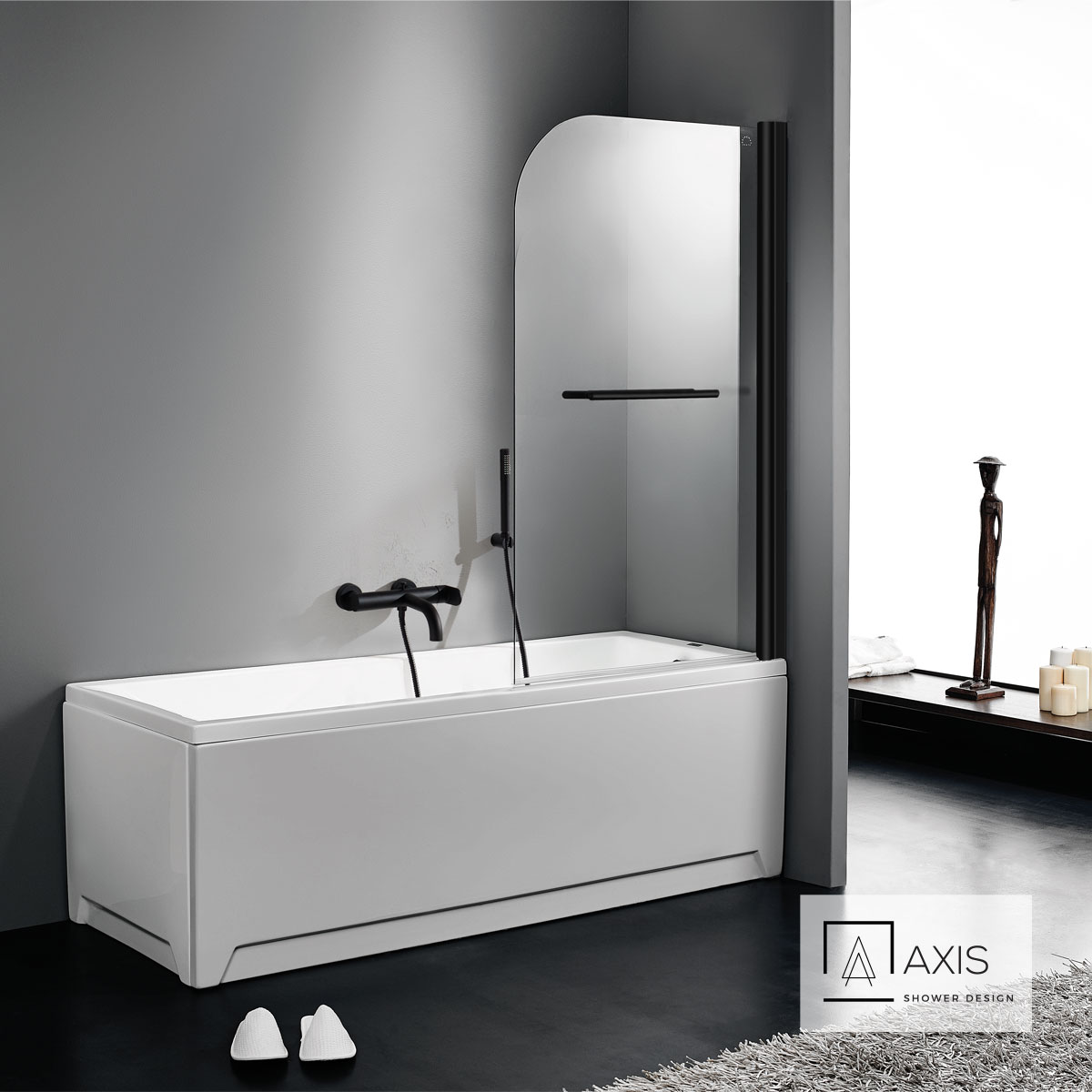 Διαχωριστικό μονόπτυχο μπανιέρας 85 εκ. ύψους 140εκ. με Πετσετοκρεμάστρα, AXIS Clear Black Matt