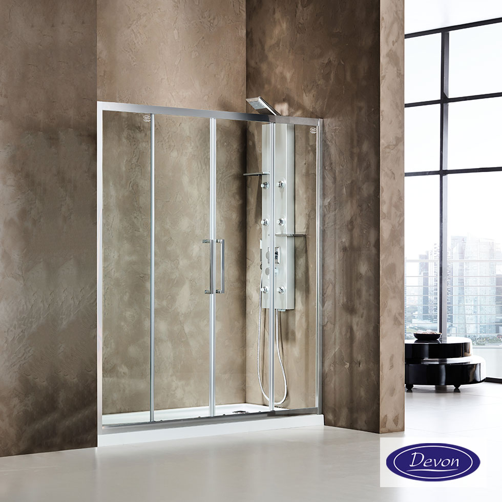 Συρόμενη διπλή πόρτα καμπίνας ντουζιέρας Primus Plus 160 ύψους 195εκ. ρυθμιζόμενη από 157 έως 161εκ. Devon Clean Glass Chrome