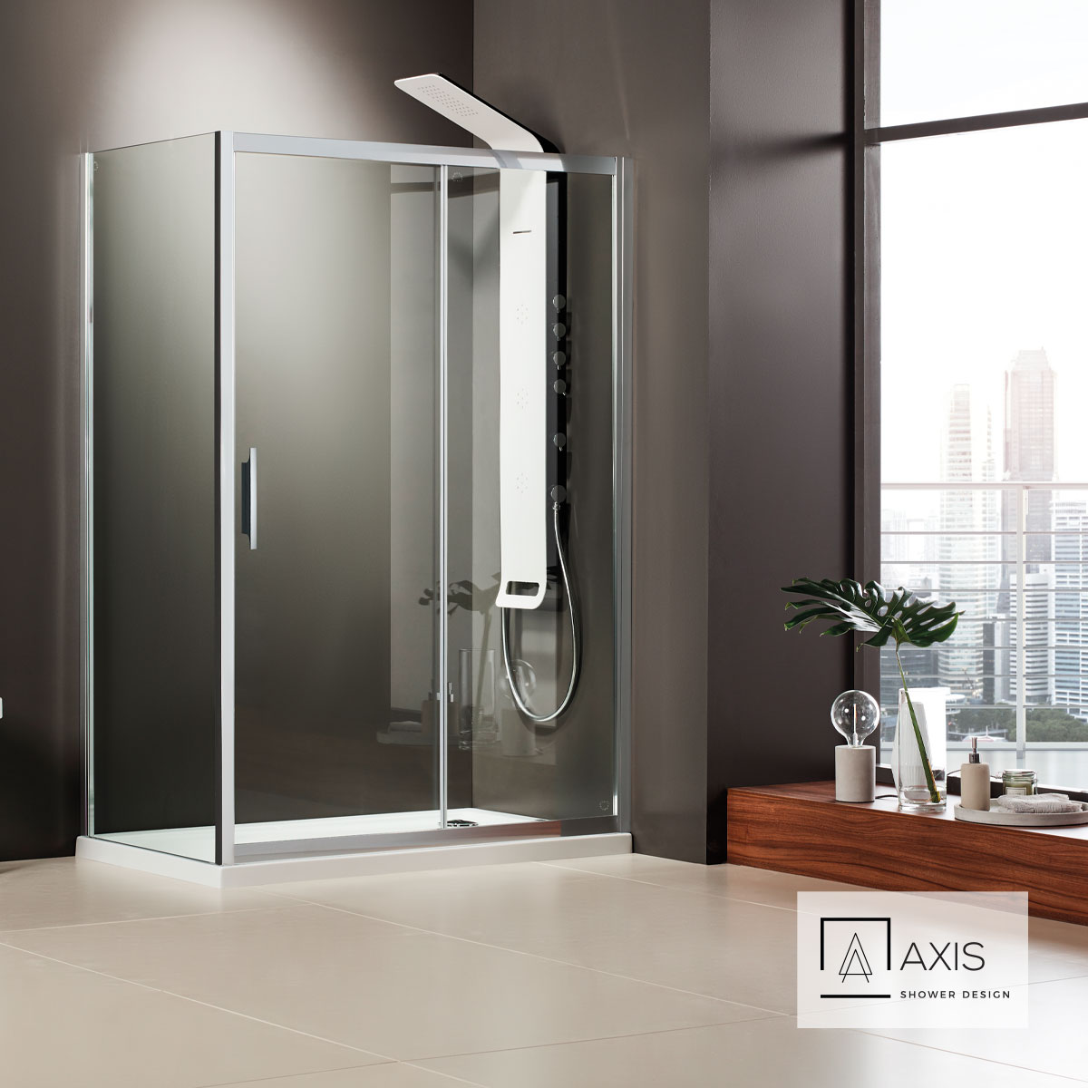 Πόρτα ντουζιέρας AXIS 130 με 1 σταθερό & 1 συρόμενο φύλλο . Διαστάσεις: 127-131 / ύψος 185 εκ. Άνοιγμα εισόδου 55εκ. Κρύσταλλο ασφαλείας Clear (διαφανές) 6 χιλ. με επεξεργασία Clean Glass