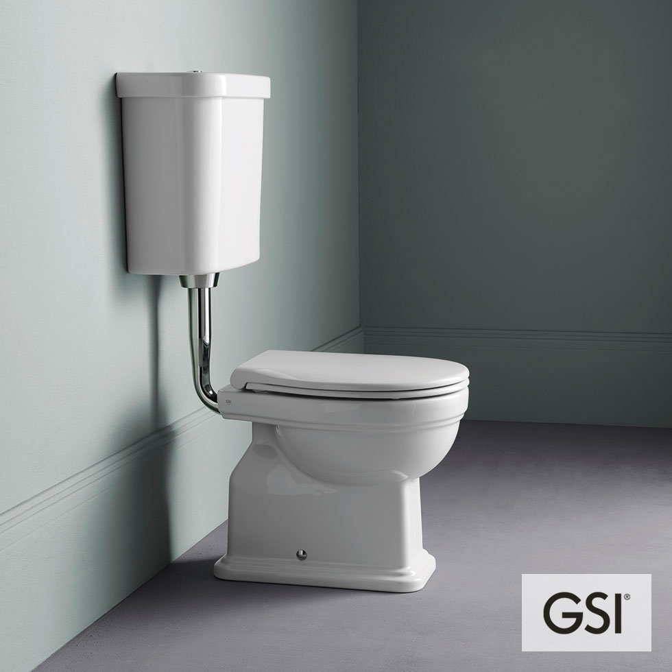 Λεκάνη CLASSIC/54 υψηλής πίεσης πισωστόμια με καζανάκι χαμηλής κατεβασιάς κομπλέ με εξάρτηση & κάλυμμα βακελίτη SOFT-CLOSE, GSI Ιταλίας