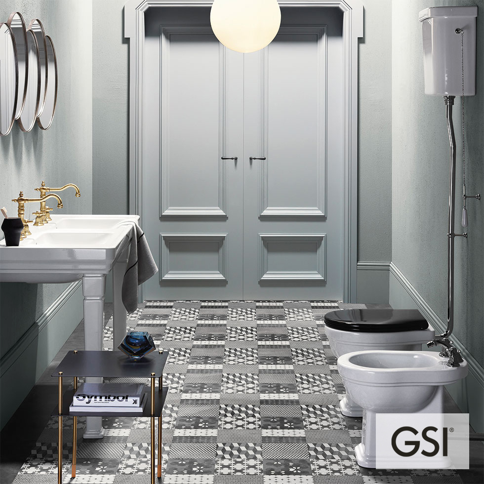 Λεκάνη CLASSIC/54 υψηλής πίεσης πισωστόμια με καζανάκι υψηλής κατεβασιάς κομπλέ με εξάρτηση & κάλυμμα βακελίτη μαύρο SOFT-CLOSE, GSI Ιταλίας