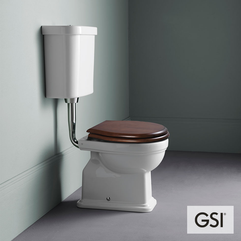 Λεκάνη CLASSIC/54 υψηλής πίεσης πισωστόμια με καζανάκι χαμηλής κατεβασιάς κομπλέ με εξάρτηση & κάλυμμα ξύλινο μασίφ, GSI Ιταλίας