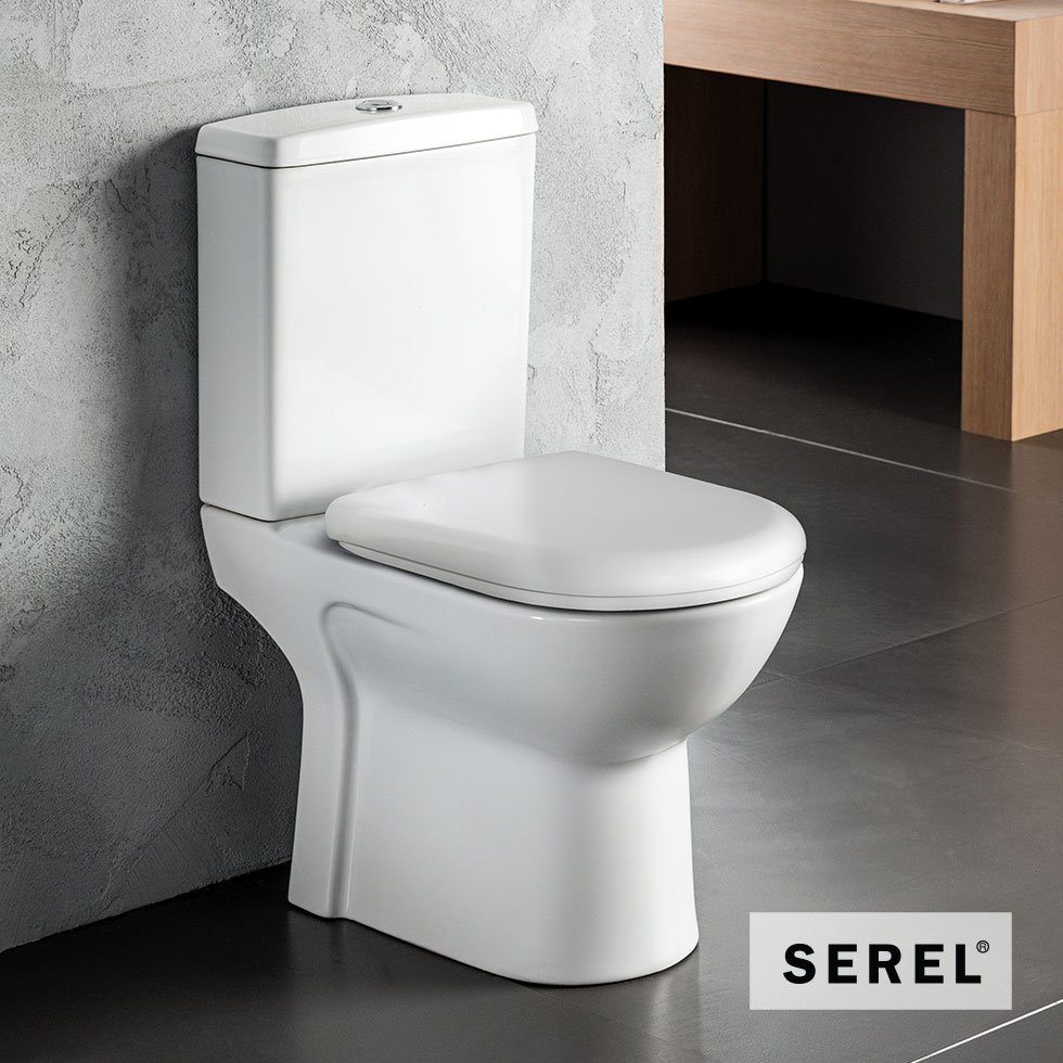 Λεκάνη Χαμηλής Πίεσης Πισωστόμια VELA Rimless με Απλό κάλυμμα 9001, Serel White