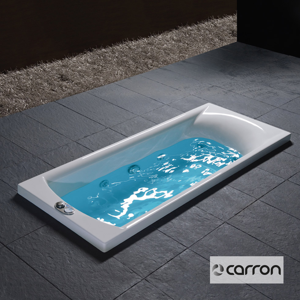 Μπανιέρα DELTA 170×70 ακρυλική βαρέως τύπου CARRONITE χωρητικότητας 170L, με σύστημα υδρομασάζ με: ηλεκτρονικό on/off, 8 jet chrome, μοτέρ 1,75 hp, υποβρύχιο φωτισμό Led, αισθητήρα στάθμης νερού & πλαίσιο στήριξης, CARRON Αγγλίας