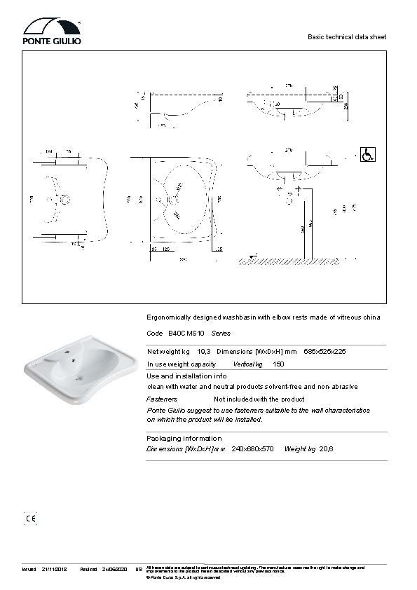 Νιπτήρας ΑΜΕΑ 68×53εκ. της σειράς 130 SERIES, PONTE GIULIO Ιταλίας