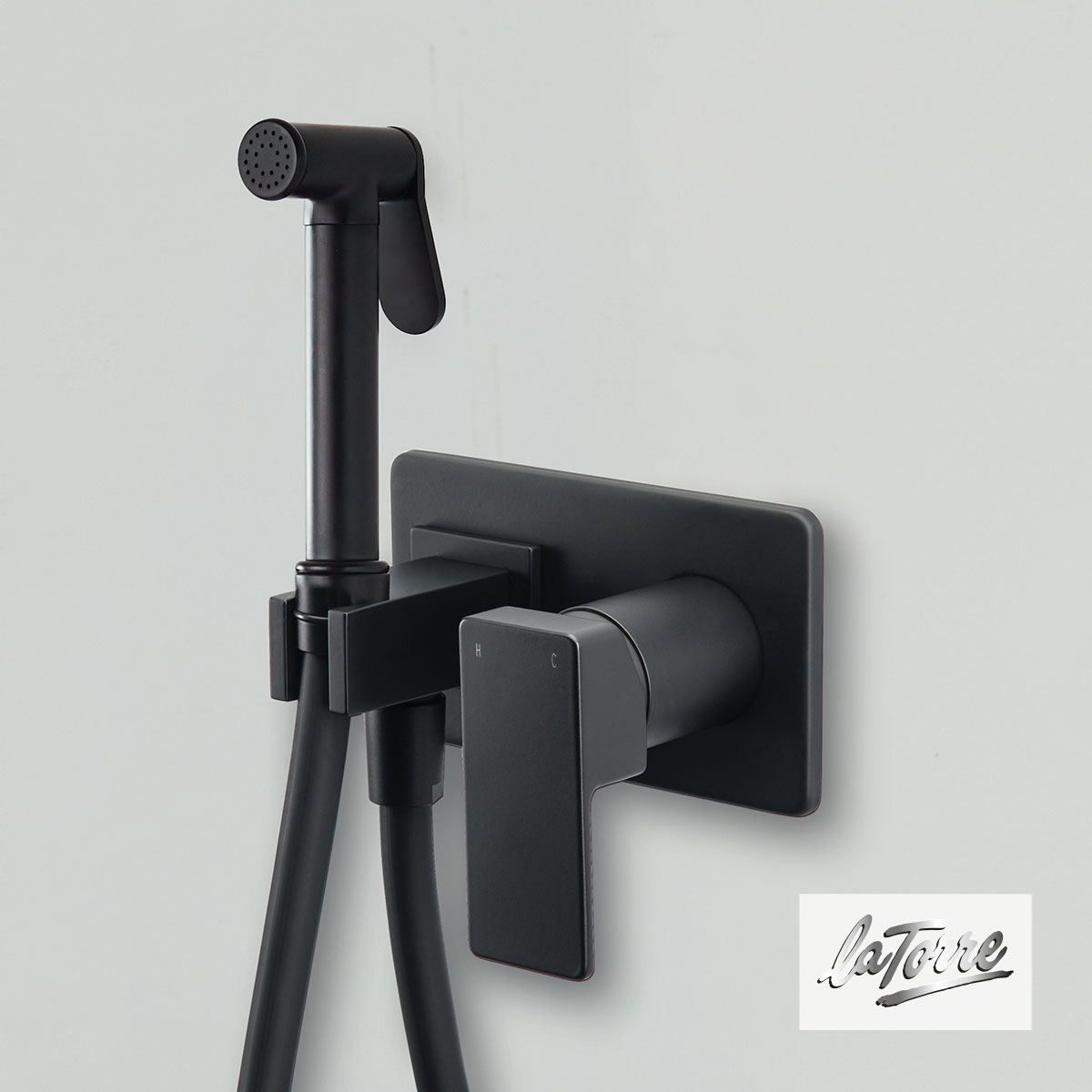 Εντοιχιζόμενος μίκτης Profili Flush-Mix για πλύση υγιεινής ή καθαρισμό λεκάνης, με: παροχή τοίχου με ενσωματωμένο στήριγμα τηλεφώνου, τηλέφωνο με αυτόματο stop & μεταλικό σπιράλ 1m. La Torre Ιταλίας