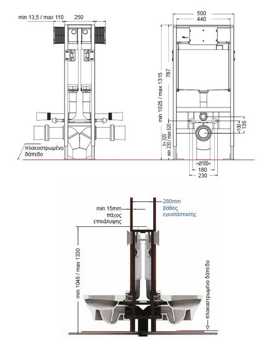 Αυτοφερόμενο καζανάκι Slim Twin διπλής όψης, για κρεμαστές λεκάνες. Ιδανικό για τοποθέτηση ανάμεσα σε γυψοσανίδες. Εγκατάσταση ένθετη, επίτοιχη με γυψοσανίδα, αυτοφερόμενο με γυψοσανίδα. Κατασκευαστής WISA