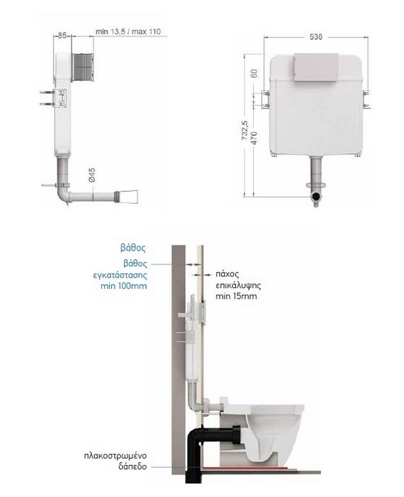 Καζανάκι Εντοιχισμένο SLIM BASIC Για Λεκάνη Υψηλής Πίεσης BTW,WISA