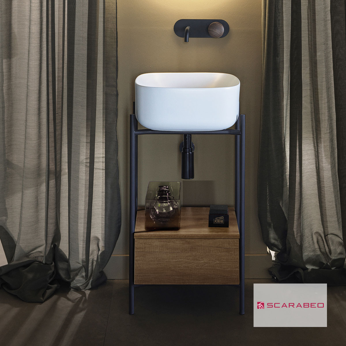 Έπιπλο μπάνιου Laila 2702-NROP με συρτάρι 2705-89 χωρίς νιπτήρα, Scarabeo
