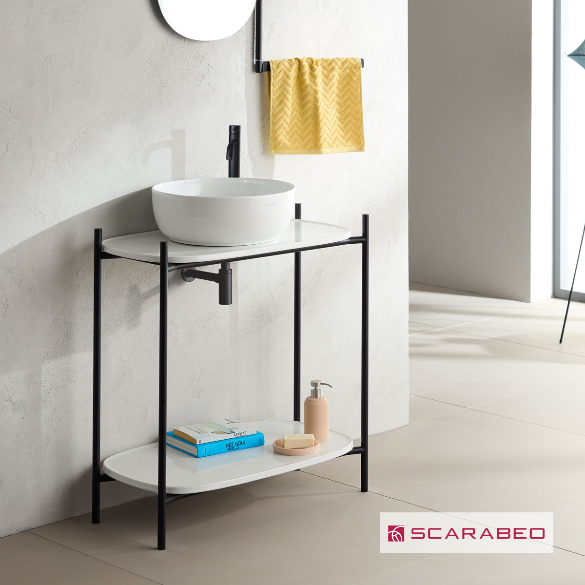 Έπιπλο μπάνιου Laila 2703-NROP με ράφια 2716+2710-300 χωρίς νιπτήρα, Scarabeo