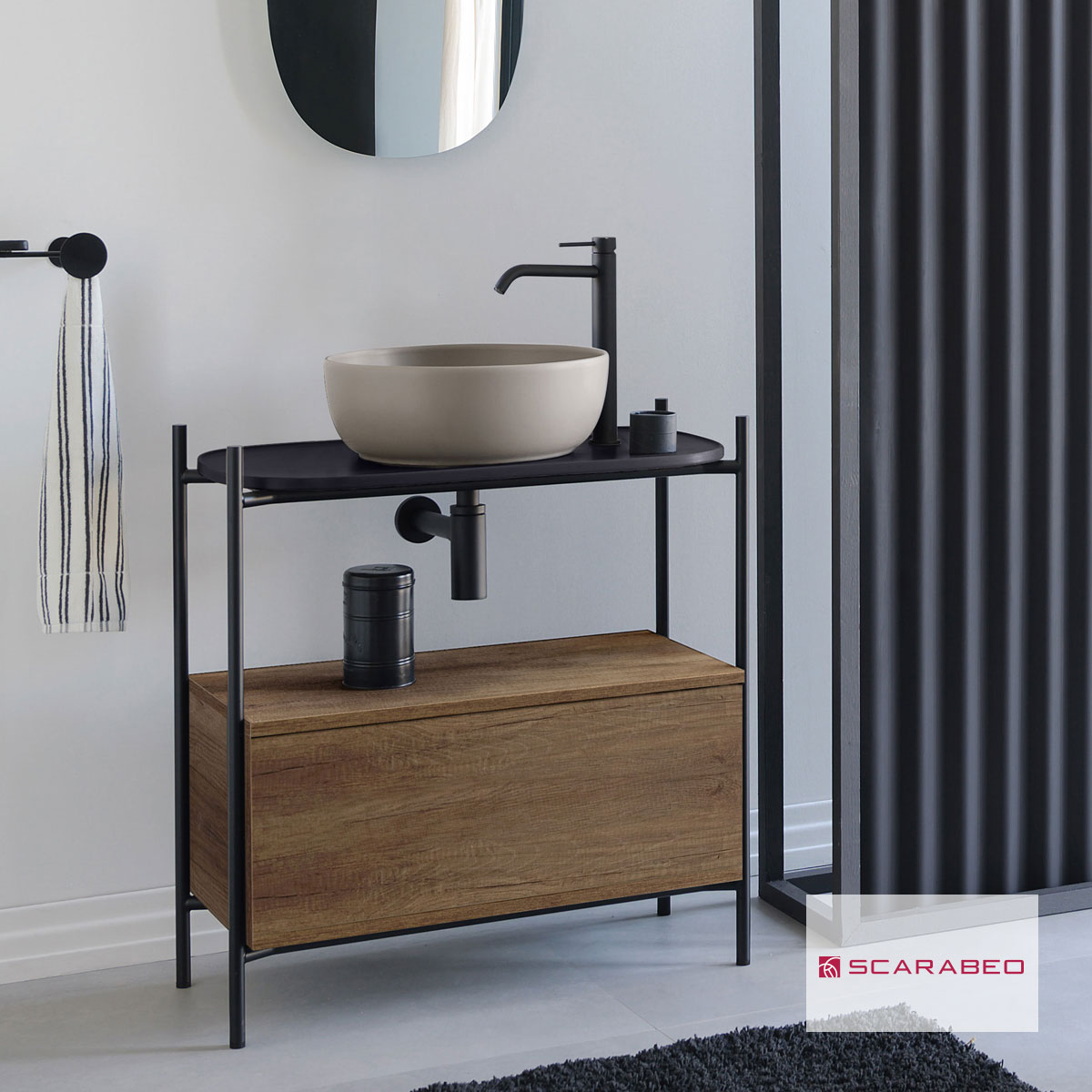 Έπιπλο μπάνιου Laila 2703-NROP με ράφι 2716-49 με συρτάρι 2712-89 χωρίς νιπτήρα, Scarabeo