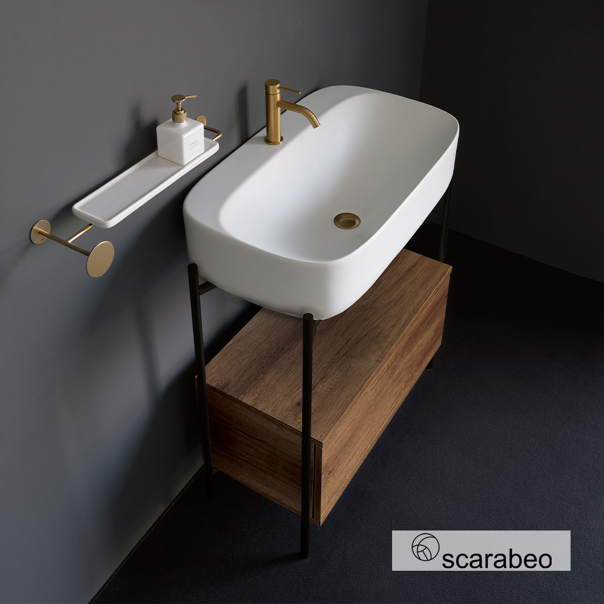 Έπιπλο μπάνιου Laila 270312-NROP89 με συρτάρι 2712-89 Χωρίς Νιπτήρα, Scarabeo