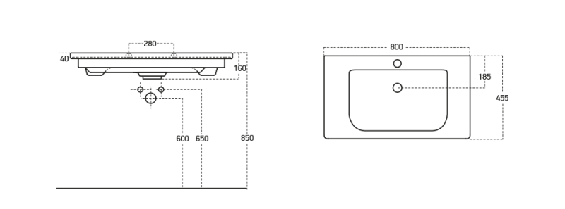 | Νιπτήρας πορσελάνης – Προφίλ 4cm | 6BSF080BL Π. 80 x B.46 x Y.16 |