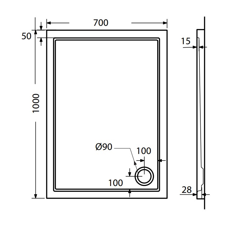 Ντουζιέρα Παραλληλόγραμμη Ακρυλική 100×70 EXTRA-FLAT Φ90 SIRENE Λευκό