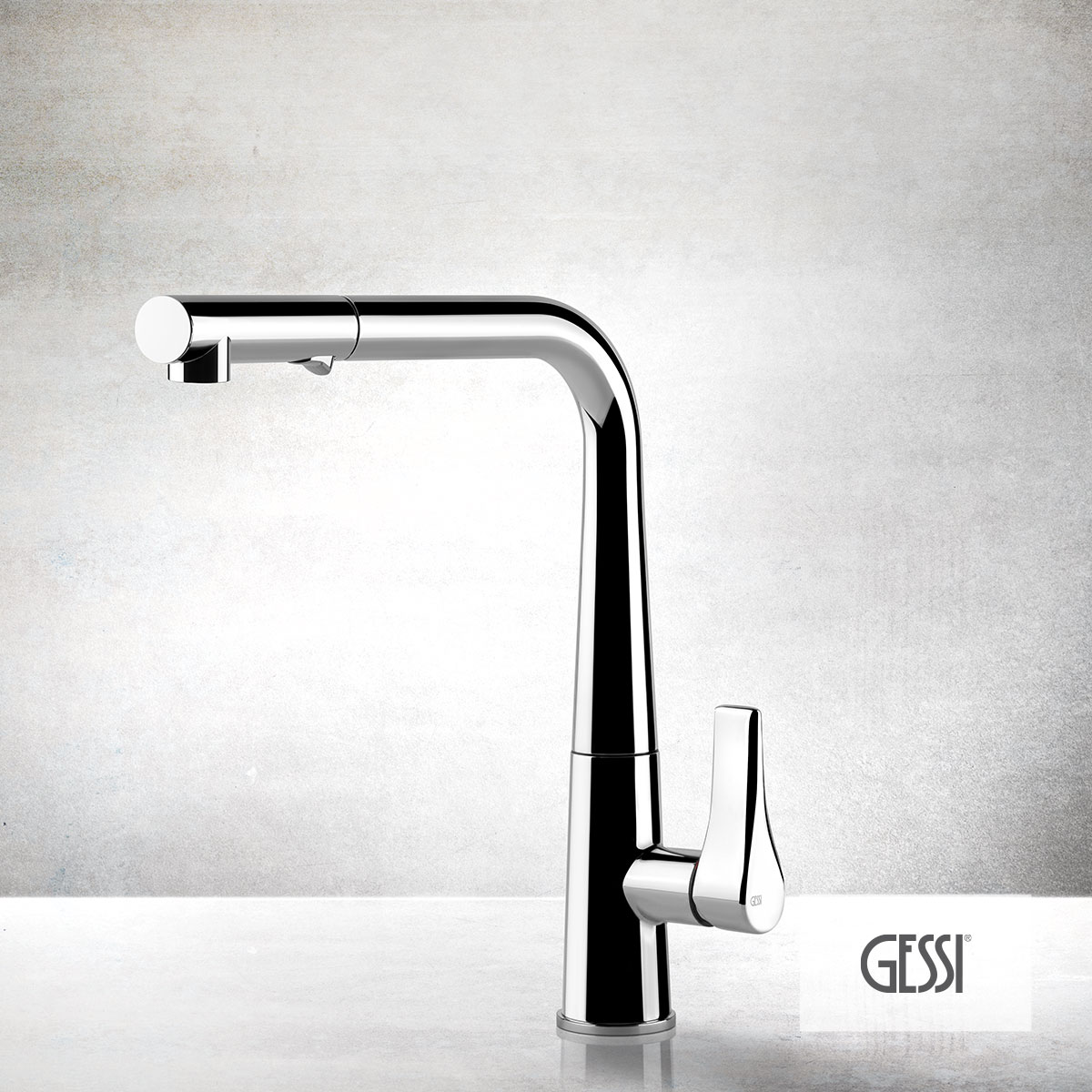 Μπαταρία νεροχύτου θερμομικτική PROTON με περιστρεφόμενο ρουξούνι και συρόμενο ντους, GESSI Ιταλίας