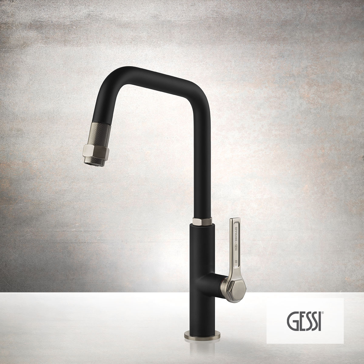 Μπαταρία νεροχύτου θερμομικτική OFFICINE με περιστρεφόμενο ρουξούνι και συρόμενο ντους, GESSI Ιταλίας
