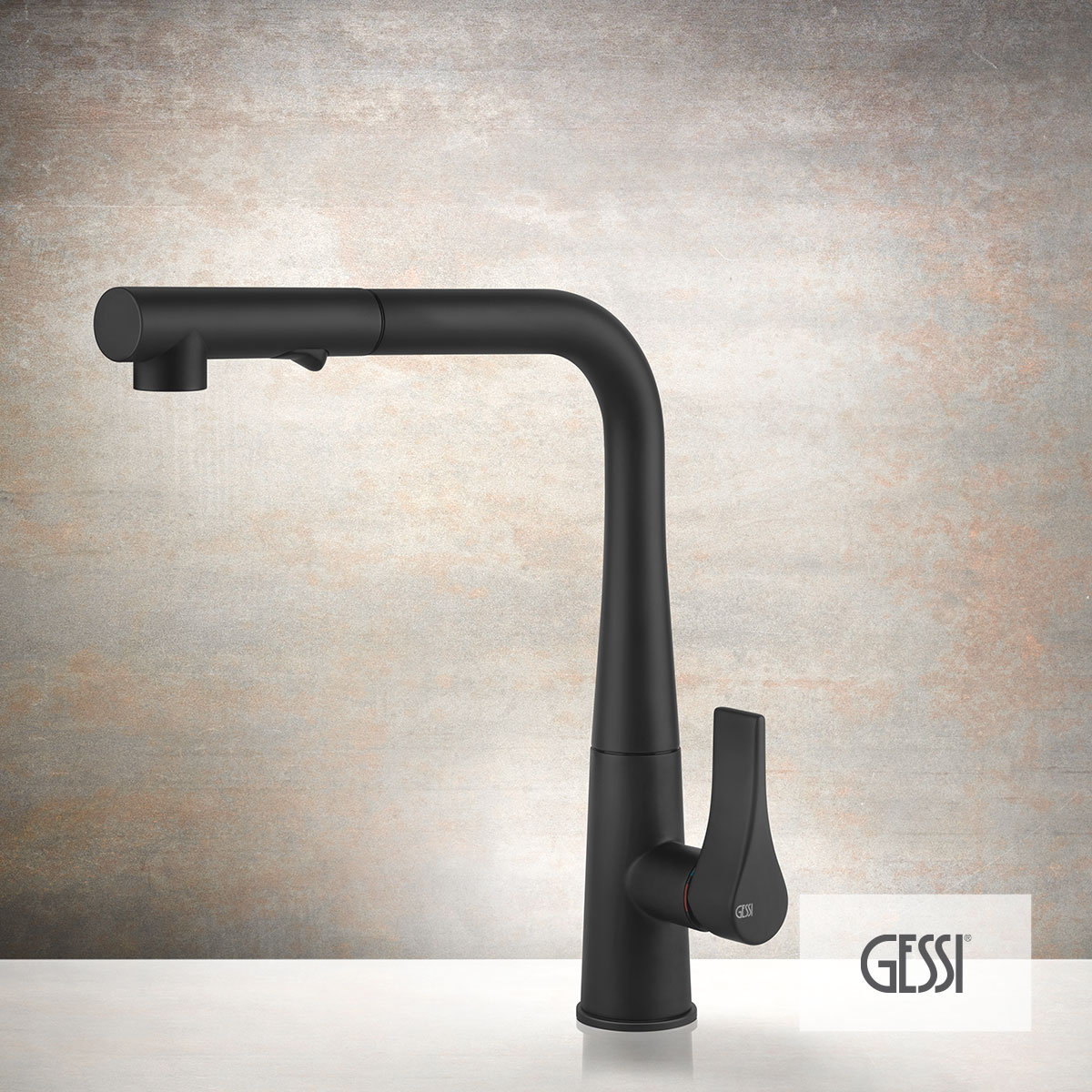 Μπαταρία νεροχύτου θερμομικτική PROTON με περιστρεφόμενο ρουξούνι και συρόμενο ντους, GESSI Ιταλίας