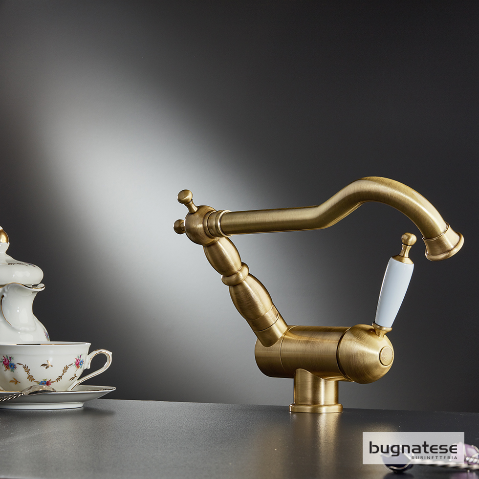 Μπαταρία Νεροχύτη Κουζίνας Σπαστή για χρήση κάτω από παράθυρο Bugnatese Bronze