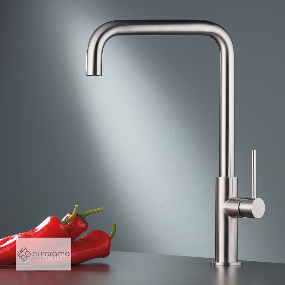 Μπαταρία νεροχύτου θερμομικτική με υψηλό περιστρεφόμενο ρουξούνι, ΙΝΟΧ, EURORAMA Ιταλίας