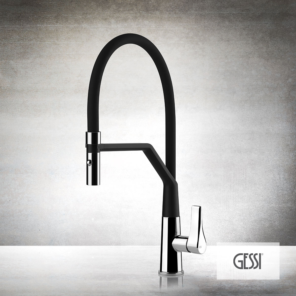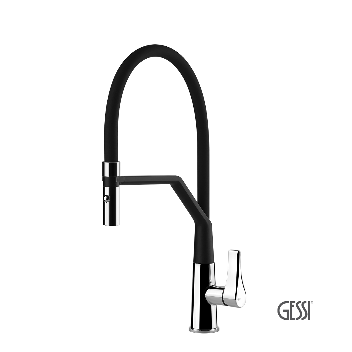 Μπαταρία νεροχύτου θερμομικτική ελατηρίου PROTON υψηλή, με περιστρεφόμενο ρουξούνι και συρόμενο ντους 2 λειτουργιών (shower / spray), GESSI Ιταλίας