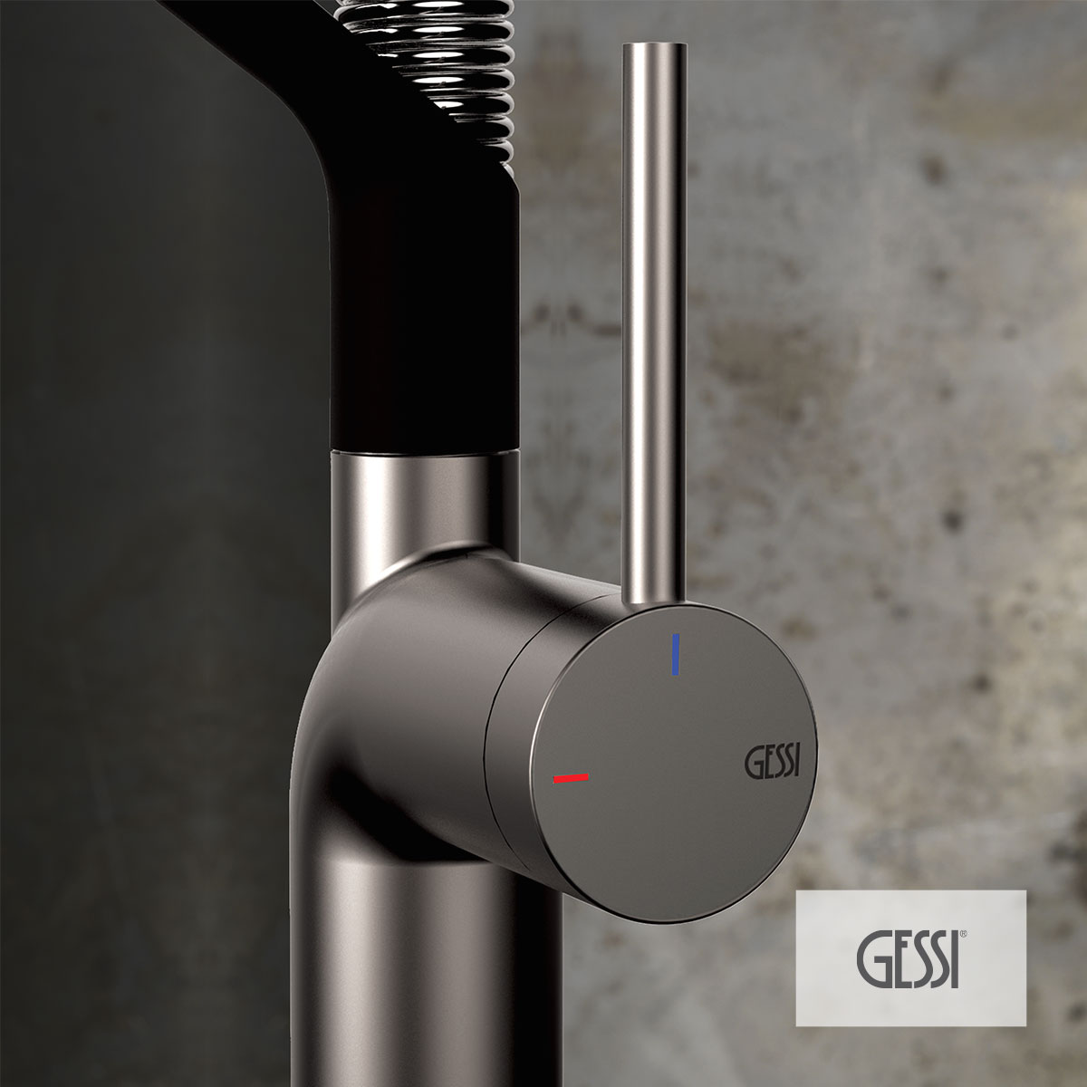 Μπαταρία νεροχύτου θερμομικτική ελατηρίου STELO υψηλή, με περιστρεφόμενο ρουξούνι και συρόμενο ντους 2 λειτουργιών (shower / spray), GESSI Ιταλίας