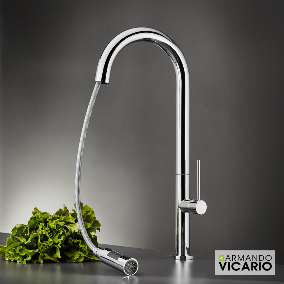 Μπαταρία νεροχύτου θερμομικτική Tozo με υψηλό περιστρεφόμενο ρουξούνι και συρόμενο ντους 2 λειτουργιών (shower/spray)