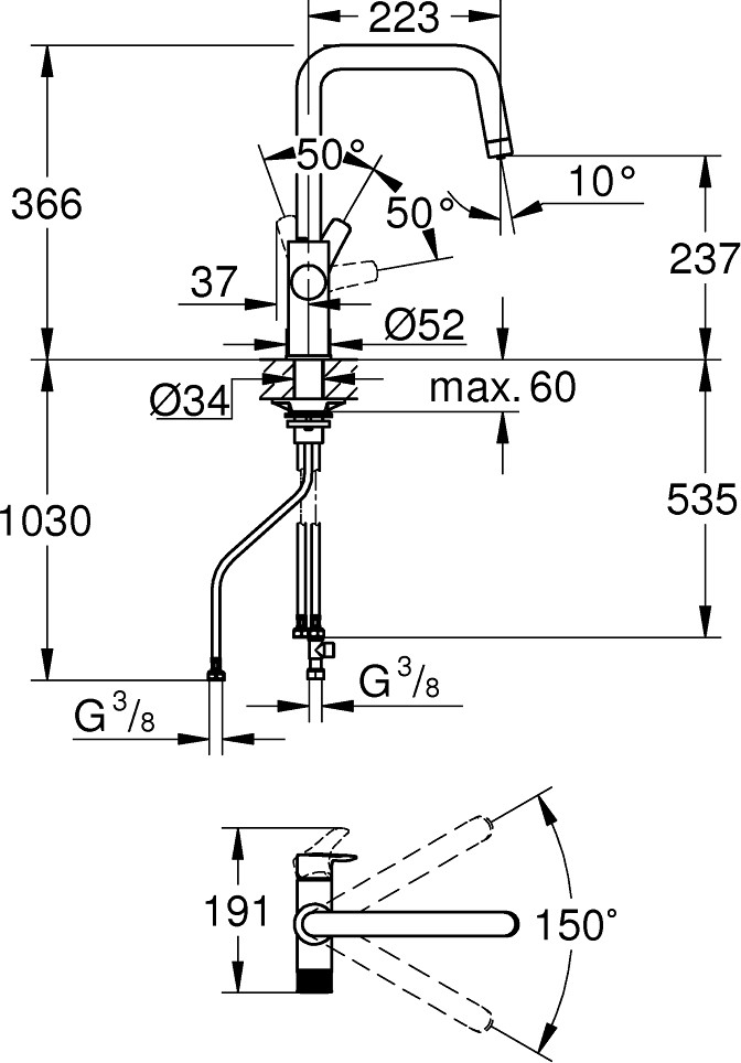 Μίξερ νιπτήρα μονού μοχλού GROHE Blue με λειτουργία φίλτρου