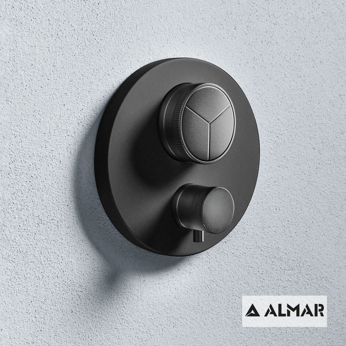 Εξωτερικό τμήμα Θερμοστατικού μίκτη εντοιχισμού 3 εξόδων “PUSH”, ALMAR Black Matt