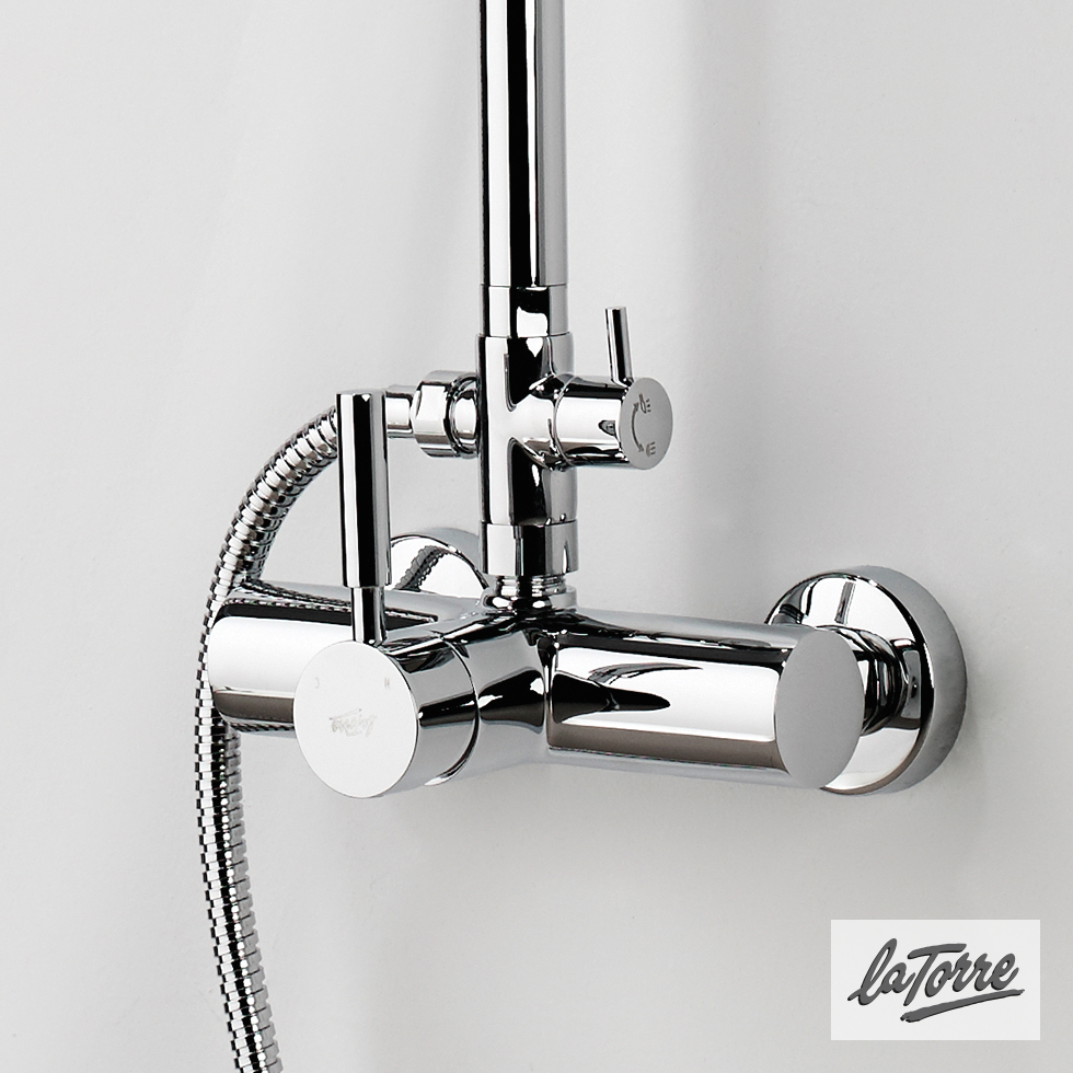 Μπαταρία Ντουζιέρας με Κεφαλή και Κολώνα μη ρυθμιζόμενου ύψους, Τech La Torre Chrome