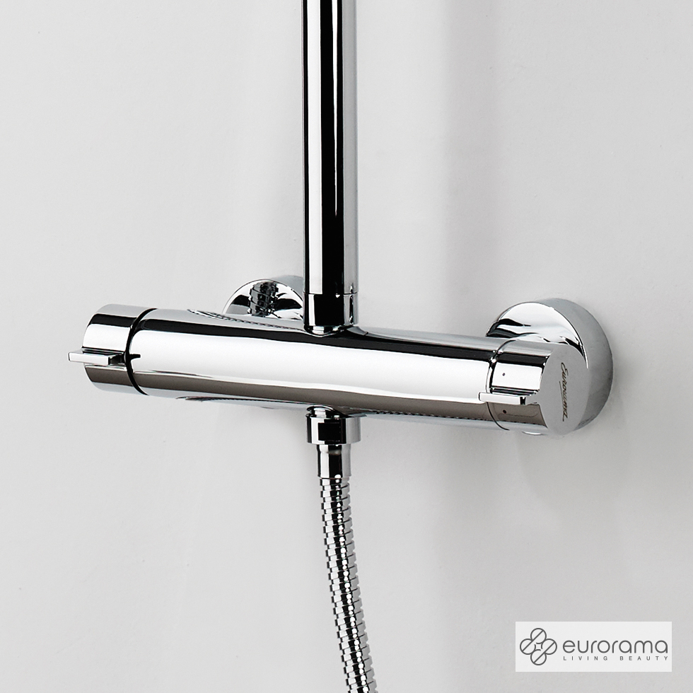 Μπαταρία ντουζιέρας θερμομικτική 2 εξόδων με κολώνα σταθερού ύψους 110 εκ., κεφαλή ντουζ στρόγγυλη Φ20 εκ., τηλέφωνο anticalcare & άθραυστο σπιράλ 1.5m, EURORAMA Ιταλίας