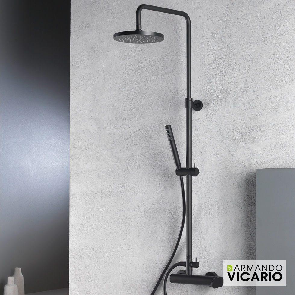 Μπαταρία Ντουζιέρας με Κεφαλή και Κολώνα ρυθμιζόμενου ύψους Slim Vicario Black Matt