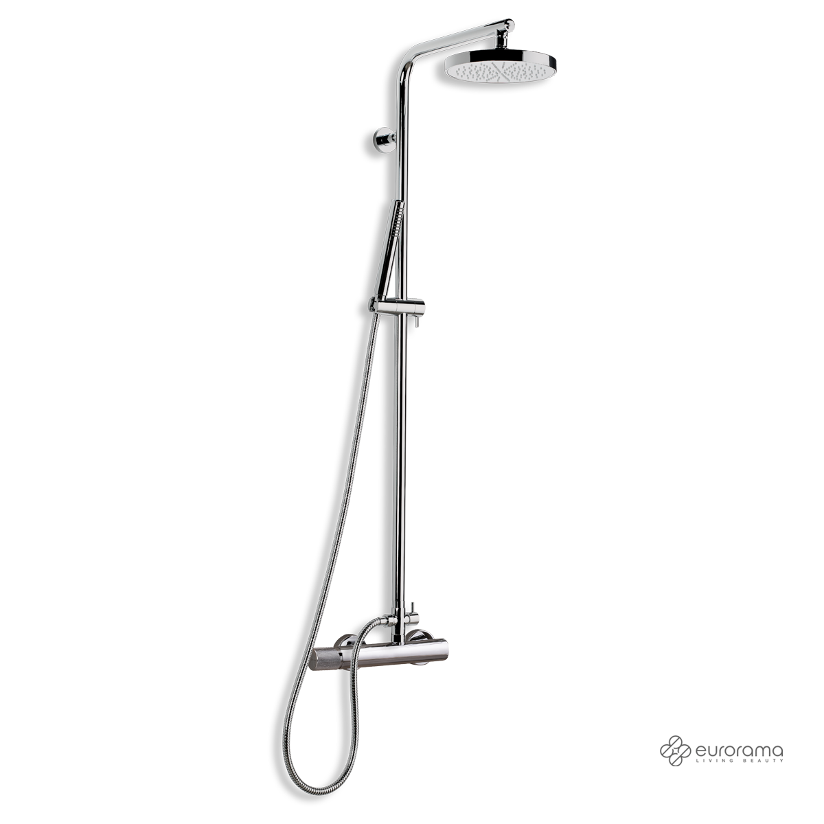 Μπαταρία ντουζιέρας θερμομικτική ELETTA TECNO 2 εξόδων με κολώνα Φ25 mm σταθερού ύψους 117 cm, ανακλινόμενη κεφαλή Φ20 cm & τηλέφωνο με άθραυστο σπιράλ 1.5m, EURORAMA Ιταλίας