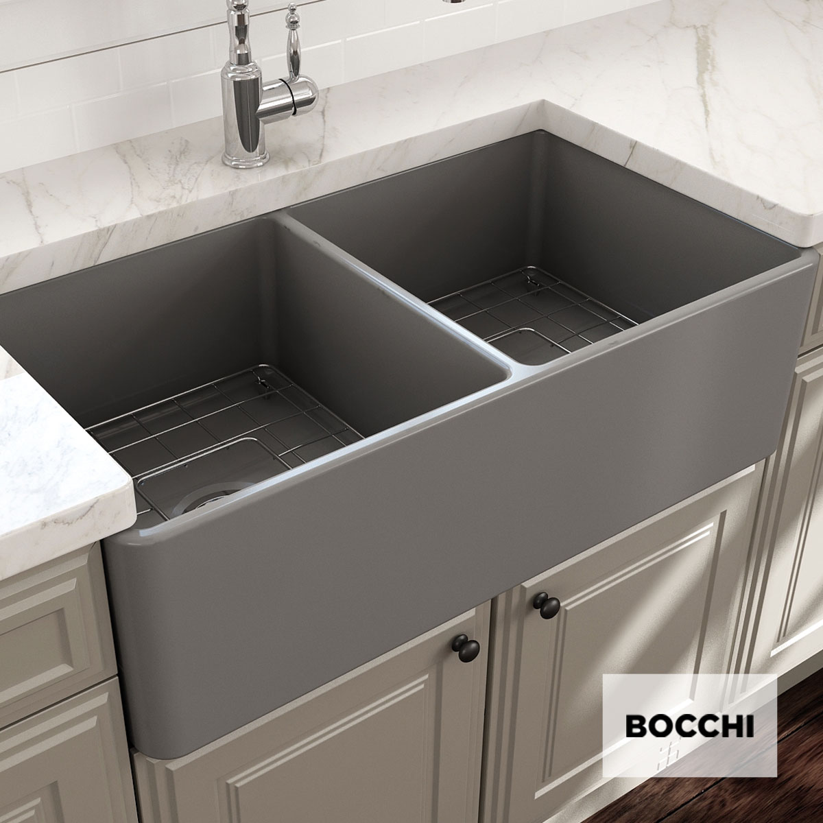 Νεροχύτης Κουζίνας Πορσελάνης Επικαθήμενος 84×46 Bocchi Grey Matt
