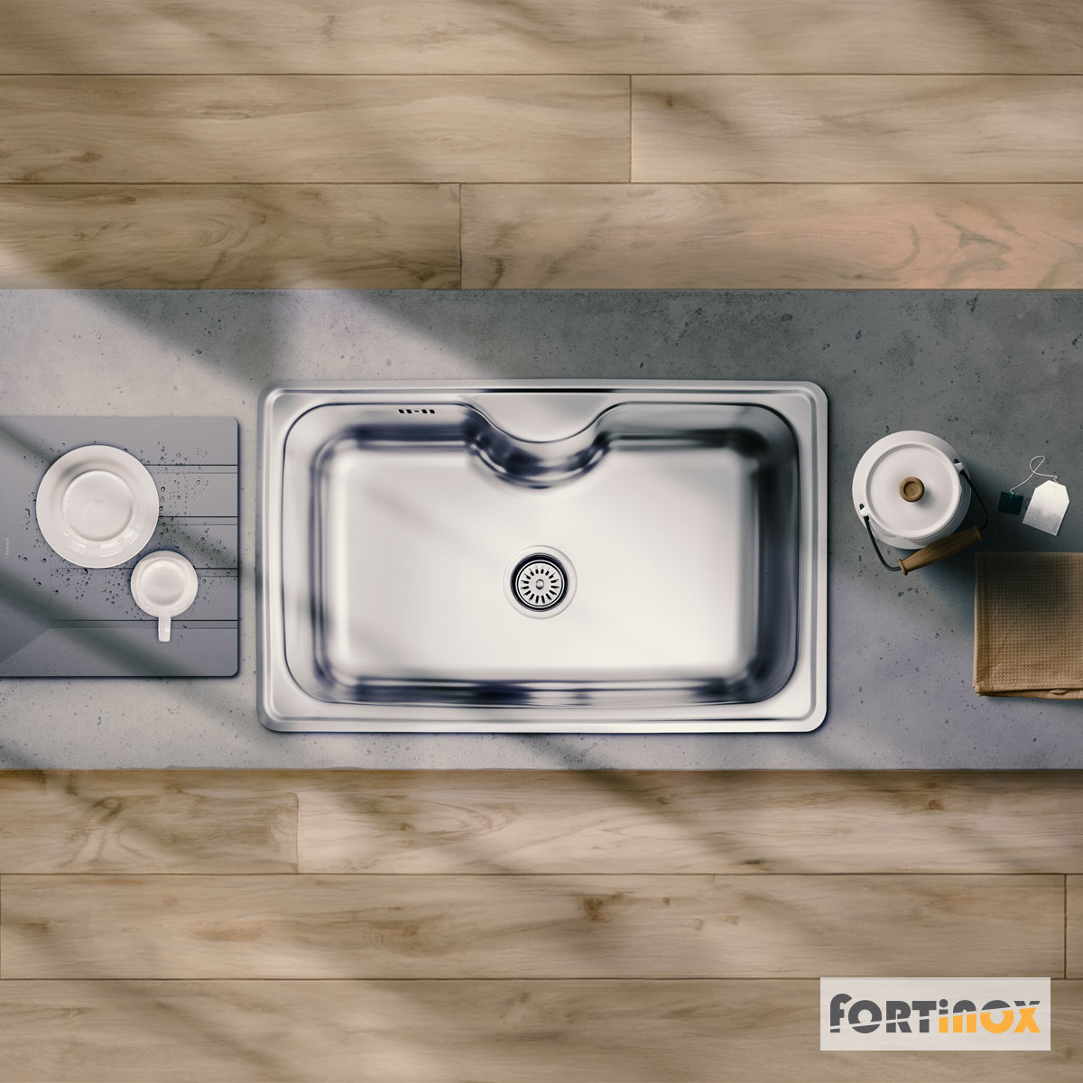 Νεροχύτης ανοξείδωτος 80×50 εκ. με 1 γούρνα για ερμάριο 80 εκ., της σειράς Arena, Fortinox
