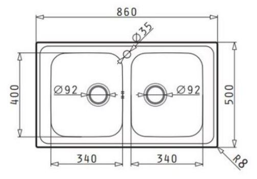 Διαστάσεις νεροχύτη: 860 x 500 mm