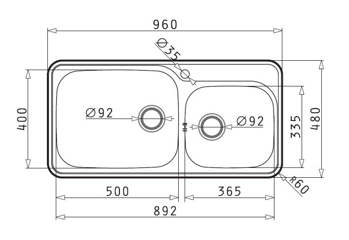 Διαστάσεις Νεροχύτη: 960 x 480mm
