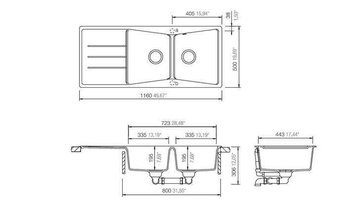 Νεροχύτης granite 116×50 της σειράς CRISTALITE CITY με δυο ίδιες γούρνες και πάγκο εργασίας για ερμάριο 80 εκ., SCHOCK Γερμανίας