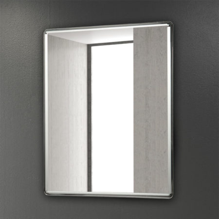 Επιτοίχιος καθρέπτης μπάνιου με φωτισμό LED, με εξωτερικό πλαίσιο από ανοξείδωτο ατσάλι AISI 304, όπου φέρει φινίρισμα σατινέ. Ιδανικός για κάθε μπάνιο με κατακόρυφη ή οριζόντια τοποθέτηση.
