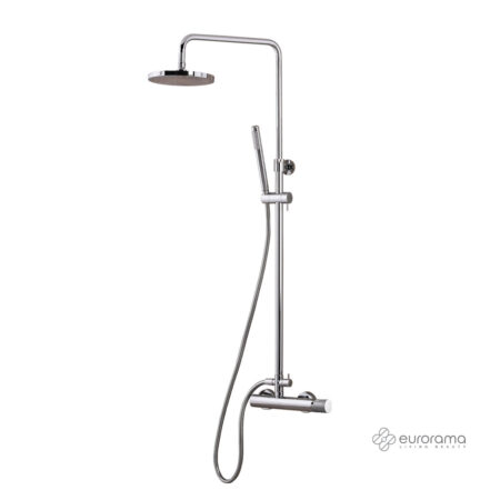 Θερμοστατική Μπαταρία Ντουζιέρας με Κεφαλή και Κολώνα ρυθμιζόμενου ύψους Thermo Round Eurorama Chrome