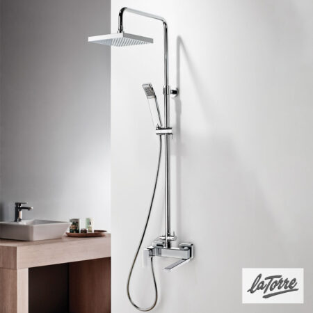 Μπαταρία Ντουζιέρας με Κεφαλή και Κολώνα ρυθμιζόμενου ύψους, Τech La Torre Inox