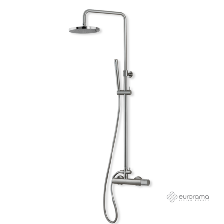 Μπαταρία ντουζιέρας θερμομικτική INDUSTRIAL 2 εξόδων με κολώνα Φ20/25 mm ρυθμιζόμενου ύψους 83-144 cm, ανακλινόμενη κεφαλή Φ20 cm & τηλέφωνο