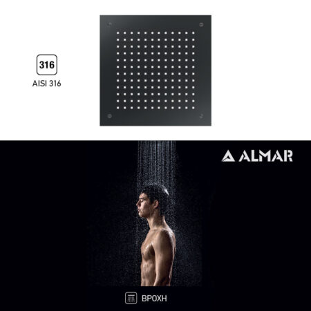 Κεφαλή Ντουζ Εντοιχισμού Οροφής Temptation 38×38, Almar PVD Black Brushed