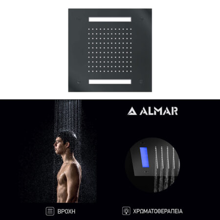 Κεφαλή Ντουζ Εντοιχισμού Οροφής 30×30 με Χρωματοθεραπεία, Almar PVD Black Brushed