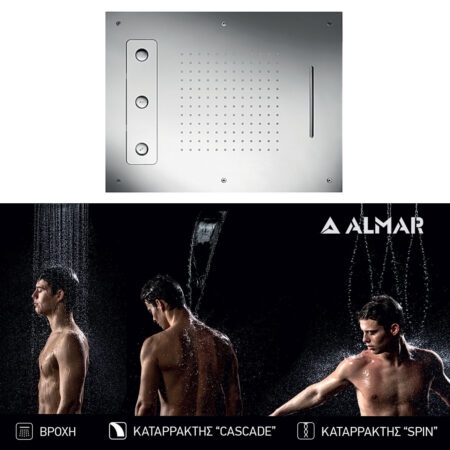 Κεφαλή Ντουζ Εντοιχισμού Οροφής 63×48, Almar Inox Chrome