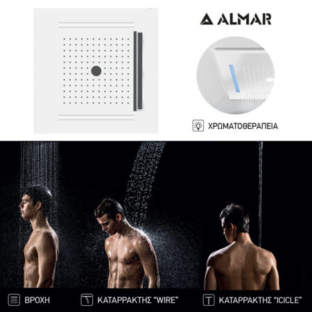 Κεφαλή Ντουζ Εντοιχισμού Οροφής Temotion με Χρωματοθεραπεία 50×50, Almar White Matt