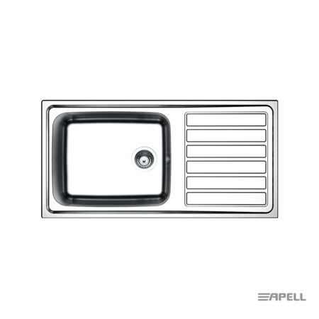 Νεροχύτης ANNIVERSARIO ανοξείδωτος 100×50 εκ. με 1 μεγάλη γούρνα & πάγκο εργασίας, για ερμάριο 80 εκ., APELL Ιταλίας