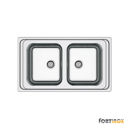 Νεροχύτης ανοξείδωτος 86×50 εκ. ένθετος με 2 γούρνες για ερμάριο 90 εκ., της σειράς Arena, Fortinox
