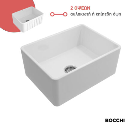 Νεροχύτης Κουζίνας Πορσελάνης Επικαθήμενος 61×46,5 Bocchi White Matt