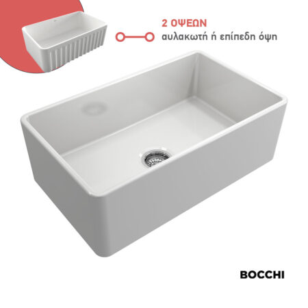 Νεροχύτης Κουζίνας Πορσελάνης Επικαθήμενος 84×46 Bocchi White